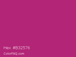 Hex #b32576 Color is a normal magenta color and the nearest color is Hibiscus #b6316c. Hex code #b32576 and RGB value is rgb(179,37,118). In RGB color space, this color is composed of 70% red, 15% green, 46% blue, In CMYK color space, this color is composed of 0% cyan, 79% magenta, 34% yellow , 30% black , In HSL color space, this color has a hue angle of 326° , 66% saturation and 42% lightness.