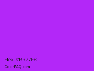 Hex #b327f8 Color is a normal purple color and the nearest color is Veronica #a020f0. Hex code #b327f8 and RGB value is rgb(179,39,248). In RGB color space, this color is composed of 70% red, 15% green, 97% blue, In CMYK color space, this color is composed of 28% cyan, 84% magenta, 0% yellow , 3% black , In HSL color space, this color has a hue angle of 280° , 94% saturation and 56% lightness.