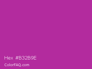 Hex #b32b9e Color is a normal magenta color and the nearest color is Byzantine #bd33a4. Hex code #b32b9e and RGB value is rgb(179,43,158). In RGB color space, this color is composed of 70% red, 17% green, 62% blue, In CMYK color space, this color is composed of 0% cyan, 76% magenta, 12% yellow , 30% black , In HSL color space, this color has a hue angle of 309° , 61% saturation and 44% lightness.