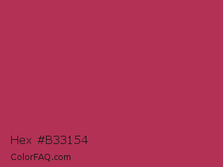 Hex #b33154 Color is a normal rose color and the nearest color is Night Shadz #aa375a. Hex code #b33154 and RGB value is rgb(179,49,84). In RGB color space, this color is composed of 70% red, 19% green, 33% blue, In CMYK color space, this color is composed of 0% cyan, 73% magenta, 53% yellow , 30% black , In HSL color space, this color has a hue angle of 344° , 57% saturation and 45% lightness.