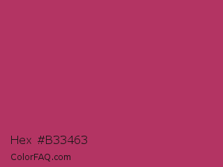 Hex #b33463 Color is a normal rose color and the nearest color is Rich Maroon #b03060. Hex code #b33463 and RGB value is rgb(179,52,99). In RGB color space, this color is composed of 70% red, 20% green, 39% blue, In CMYK color space, this color is composed of 0% cyan, 71% magenta, 45% yellow , 30% black , In HSL color space, this color has a hue angle of 338° , 55% saturation and 45% lightness.