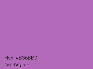 Hex #b36bb9 Color is a normal magenta color and the nearest color is Pearly Purple #b768a2. Hex code #b36bb9 and RGB value is rgb(179,107,185). In RGB color space, this color is composed of 70% red, 42% green, 73% blue, In CMYK color space, this color is composed of 3% cyan, 42% magenta, 0% yellow , 27% black , In HSL color space, this color has a hue angle of 295° , 36% saturation and 57% lightness.
