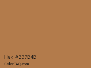 Hex #b37b4b Color is a normal orange color and the nearest color is Brown Sugar #af6e4d. Hex code #b37b4b and RGB value is rgb(179,123,75). In RGB color space, this color is composed of 70% red, 48% green, 29% blue, In CMYK color space, this color is composed of 0% cyan, 31% magenta, 58% yellow , 30% black , In HSL color space, this color has a hue angle of 28° , 41% saturation and 50% lightness.