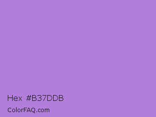 Hex #b37ddb Color is a light purple color and the nearest color is Lavender #b57edc. Hex code #b37ddb and RGB value is rgb(179,125,219). In RGB color space, this color is composed of 70% red, 49% green, 86% blue, In CMYK color space, this color is composed of 18% cyan, 43% magenta, 0% yellow , 14% black , In HSL color space, this color has a hue angle of 274° , 57% saturation and 67% lightness.