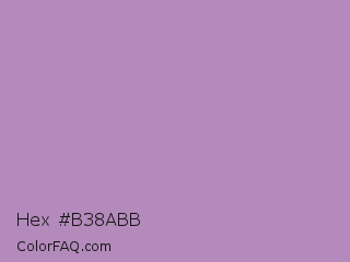 Hex #b38abb Color is a light purple color and the nearest color is African Violet #b284be. Hex code #b38abb and RGB value is rgb(179,138,187). In RGB color space, this color is composed of 70% red, 54% green, 73% blue, In CMYK color space, this color is composed of 4% cyan, 26% magenta, 0% yellow , 27% black , In HSL color space, this color has a hue angle of 290° , 26% saturation and 64% lightness.