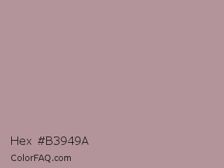 Hex #b3949a Color is a light red color and the nearest color is Del Rio #b09a95. Hex code #b3949a and RGB value is rgb(179,148,154). In RGB color space, this color is composed of 70% red, 58% green, 60% blue, In CMYK color space, this color is composed of 0% cyan, 17% magenta, 14% yellow , 30% black , In HSL color space, this color has a hue angle of 348° , 17% saturation and 64% lightness.