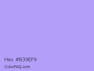 Hex #b39ef9 Color is a light indigo color and the nearest color is Biloba Flower #b2a1ea. Hex code #b39ef9 and RGB value is rgb(179,158,249). In RGB color space, this color is composed of 70% red, 62% green, 98% blue, In CMYK color space, this color is composed of 28% cyan, 37% magenta, 0% yellow , 2% black , In HSL color space, this color has a hue angle of 254° , 88% saturation and 80% lightness.