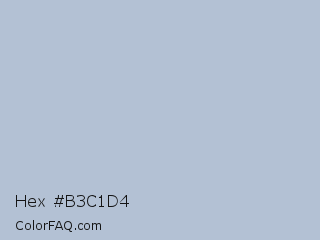 Hex #b3c1d4 Color is a light blue color and the nearest color is Heather #b7c3d0. Hex code #b3c1d4 and RGB value is rgb(179,193,212). In RGB color space, this color is composed of 70% red, 76% green, 83% blue, In CMYK color space, this color is composed of 16% cyan, 9% magenta, 0% yellow , 17% black , In HSL color space, this color has a hue angle of 215° , 28% saturation and 77% lightness.