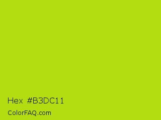 Hex #b3dc11 Color is a normal lime color and the nearest color is Inch Worm #b0e313. Hex code #b3dc11 and RGB value is rgb(179,220,17). In RGB color space, this color is composed of 70% red, 86% green, 7% blue, In CMYK color space, this color is composed of 19% cyan, 0% magenta, 92% yellow , 14% black , In HSL color space, this color has a hue angle of 72° , 86% saturation and 46% lightness.