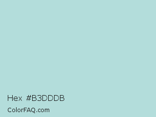 Hex #b3dddb Color is a light cyan color and the nearest color is Powder Blue #b0e0e6. Hex code #b3dddb and RGB value is rgb(179,221,219). In RGB color space, this color is composed of 70% red, 87% green, 86% blue, In CMYK color space, this color is composed of 19% cyan, 0% magenta, 1% yellow , 13% black , In HSL color space, this color has a hue angle of 177° , 38% saturation and 78% lightness.