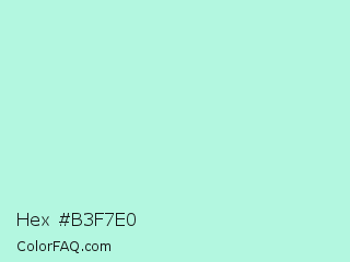 Hex #b3f7e0 Color is a very light green color and the nearest color is Ice Cold #b1f4e7. Hex code #b3f7e0 and RGB value is rgb(179,247,224). In RGB color space, this color is composed of 70% red, 97% green, 88% blue, In CMYK color space, this color is composed of 28% cyan, 0% magenta, 9% yellow , 3% black , In HSL color space, this color has a hue angle of 160° , 81% saturation and 84% lightness.