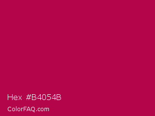 Hex #b4054b Color is a normal rose color and the nearest color is Pictorial Carmine #c30b4e. Hex code #b4054b and RGB value is rgb(180,5,75). In RGB color space, this color is composed of 71% red, 2% green, 29% blue, In CMYK color space, this color is composed of 0% cyan, 97% magenta, 58% yellow , 29% black , In HSL color space, this color has a hue angle of 336° , 95% saturation and 36% lightness.