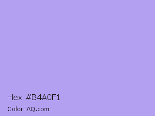 Hex #b4a0f1 Color is a light indigo color and the nearest color is Biloba Flower #b2a1ea. Hex code #b4a0f1 and RGB value is rgb(180,160,241). In RGB color space, this color is composed of 71% red, 63% green, 95% blue, In CMYK color space, this color is composed of 25% cyan, 34% magenta, 0% yellow , 5% black , In HSL color space, this color has a hue angle of 255° , 74% saturation and 79% lightness.