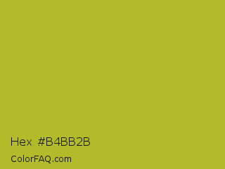 Hex #b4bb2b Color is a normal yellow color and the nearest color is Acid Green #b0bf1a. Hex code #b4bb2b and RGB value is rgb(180,187,43). In RGB color space, this color is composed of 71% red, 73% green, 17% blue, In CMYK color space, this color is composed of 4% cyan, 0% magenta, 77% yellow , 27% black , In HSL color space, this color has a hue angle of 63° , 63% saturation and 45% lightness.