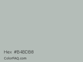 Hex #b4bdb8 Color is a light green color and the nearest color is Ash Gray #b2beb5. Hex code #b4bdb8 and RGB value is rgb(180,189,184). In RGB color space, this color is composed of 71% red, 74% green, 72% blue, In CMYK color space, this color is composed of 5% cyan, 0% magenta, 3% yellow , 26% black , In HSL color space, this color has a hue angle of 147° , 6% saturation and 72% lightness.