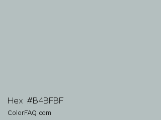 Hex #b4bfbf Color is a light cyan color and the nearest color is Gray X11 Gray #bebebe. Hex code #b4bfbf and RGB value is rgb(180,191,191). In RGB color space, this color is composed of 71% red, 75% green, 75% blue, In CMYK color space, this color is composed of 6% cyan, 0% magenta, 0% yellow , 25% black , In HSL color space, this color has a hue angle of 180° , 8% saturation and 73% lightness.