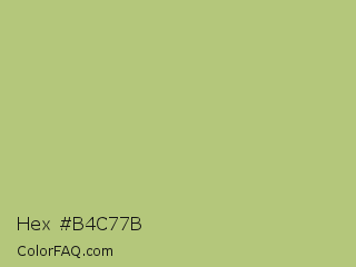 Hex #b4c77b Color is a light lime color and the nearest color is Wild Willow #b9c46a. Hex code #b4c77b and RGB value is rgb(180,199,123). In RGB color space, this color is composed of 71% red, 78% green, 48% blue, In CMYK color space, this color is composed of 10% cyan, 0% magenta, 38% yellow , 22% black , In HSL color space, this color has a hue angle of 75° , 40% saturation and 63% lightness.