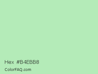 Hex #b4ebb8 Color is a very light green color and the nearest color is Madang #b7f0be. Hex code #b4ebb8 and RGB value is rgb(180,235,184). In RGB color space, this color is composed of 71% red, 92% green, 72% blue, In CMYK color space, this color is composed of 23% cyan, 0% magenta, 22% yellow , 8% black , In HSL color space, this color has a hue angle of 124° , 58% saturation and 81% lightness.
