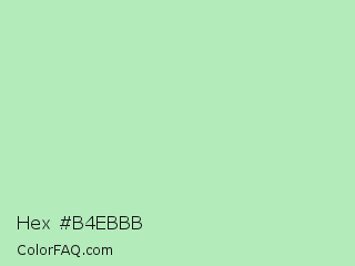 Hex #b4ebbb Color is a very light green color and the nearest color is Madang #b7f0be. Hex code #b4ebbb and RGB value is rgb(180,235,187). In RGB color space, this color is composed of 71% red, 92% green, 73% blue, In CMYK color space, this color is composed of 23% cyan, 0% magenta, 20% yellow , 8% black , In HSL color space, this color has a hue angle of 128° , 58% saturation and 81% lightness.