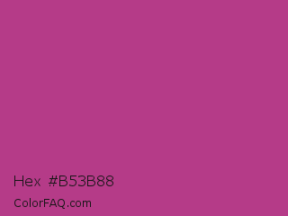Hex #b53b88 Color is a normal magenta color and the nearest color is Fandango #b53389. Hex code #b53b88 and RGB value is rgb(181,59,136). In RGB color space, this color is composed of 71% red, 23% green, 53% blue, In CMYK color space, this color is composed of 0% cyan, 67% magenta, 25% yellow , 29% black , In HSL color space, this color has a hue angle of 322° , 51% saturation and 47% lightness.