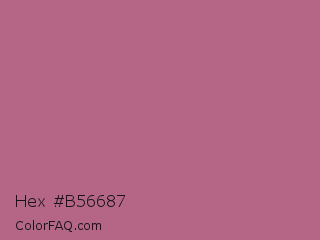 Hex #b56687 Color is a normal rose color and the nearest color is Tapestry #b05e81. Hex code #b56687 and RGB value is rgb(181,102,135). In RGB color space, this color is composed of 71% red, 40% green, 53% blue, In CMYK color space, this color is composed of 0% cyan, 44% magenta, 25% yellow , 29% black , In HSL color space, this color has a hue angle of 335° , 35% saturation and 55% lightness.