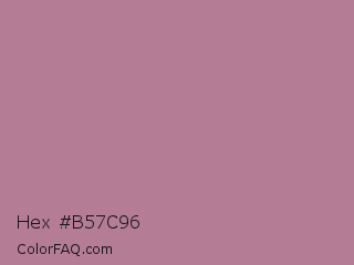 Hex #b57c96 Color is a normal rose color and the nearest color is English Lavender #b48395. Hex code #b57c96 and RGB value is rgb(181,124,150). In RGB color space, this color is composed of 71% red, 49% green, 59% blue, In CMYK color space, this color is composed of 0% cyan, 31% magenta, 17% yellow , 29% black , In HSL color space, this color has a hue angle of 333° , 28% saturation and 60% lightness.