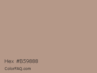 Hex #b59888 Color is a light orange color and the nearest color is Quicksand #bd978e. Hex code #b59888 and RGB value is rgb(181,152,136). In RGB color space, this color is composed of 71% red, 60% green, 53% blue, In CMYK color space, this color is composed of 0% cyan, 16% magenta, 25% yellow , 29% black , In HSL color space, this color has a hue angle of 21° , 23% saturation and 62% lightness.