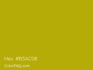 Hex #b5ac08 Color is a normal yellow color and the nearest color is Sahara #b7a214. Hex code #b5ac08 and RGB value is rgb(181,172,8). In RGB color space, this color is composed of 71% red, 67% green, 3% blue, In CMYK color space, this color is composed of 0% cyan, 5% magenta, 96% yellow , 29% black , In HSL color space, this color has a hue angle of 57° , 92% saturation and 37% lightness.