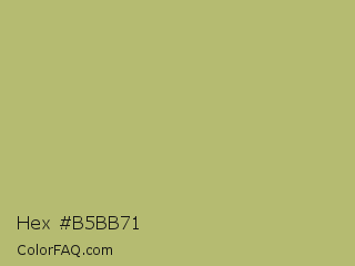 Hex #b5bb71 Color is a normal yellow color and the nearest color is Gimblet #b8b56a. Hex code #b5bb71 and RGB value is rgb(181,187,113). In RGB color space, this color is composed of 71% red, 73% green, 44% blue, In CMYK color space, this color is composed of 3% cyan, 0% magenta, 40% yellow , 27% black , In HSL color space, this color has a hue angle of 65° , 35% saturation and 59% lightness.