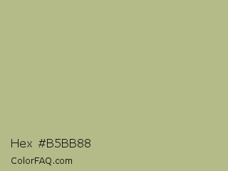 Hex #b5bb88 Color is a light yellow color and the nearest color is Sage #bcb88a. Hex code #b5bb88 and RGB value is rgb(181,187,136). In RGB color space, this color is composed of 71% red, 73% green, 53% blue, In CMYK color space, this color is composed of 3% cyan, 0% magenta, 27% yellow , 27% black , In HSL color space, this color has a hue angle of 67° , 27% saturation and 63% lightness.