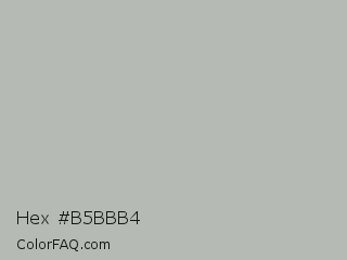 Hex #b5bbb4 Color is a light green color and the nearest color is Ash Gray #b2beb5. Hex code #b5bbb4 and RGB value is rgb(181,187,180). In RGB color space, this color is composed of 71% red, 73% green, 71% blue, In CMYK color space, this color is composed of 3% cyan, 0% magenta, 4% yellow , 27% black , In HSL color space, this color has a hue angle of 111° , 5% saturation and 72% lightness.