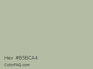 Hex #b5bca4 Color is a light lime color and the nearest color is Eagle #b6baa4. Hex code #b5bca4 and RGB value is rgb(181,188,164). In RGB color space, this color is composed of 71% red, 74% green, 64% blue, In CMYK color space, this color is composed of 4% cyan, 0% magenta, 13% yellow , 26% black , In HSL color space, this color has a hue angle of 78° , 15% saturation and 69% lightness.