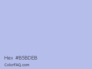Hex #b5bdeb Color is a very light blue color and the nearest color is Perano #a9bef2. Hex code #b5bdeb and RGB value is rgb(181,189,235). In RGB color space, this color is composed of 71% red, 74% green, 92% blue, In CMYK color space, this color is composed of 23% cyan, 20% magenta, 0% yellow , 8% black , In HSL color space, this color has a hue angle of 231° , 57% saturation and 82% lightness.