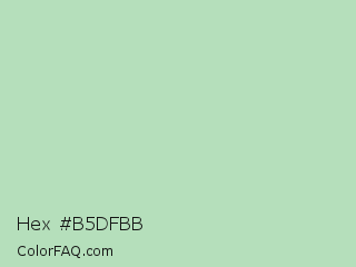 Hex #b5dfbb Color is a light green color and the nearest color is Fringy Flower #b1e2c1. Hex code #b5dfbb and RGB value is rgb(181,223,187). In RGB color space, this color is composed of 71% red, 87% green, 73% blue, In CMYK color space, this color is composed of 19% cyan, 0% magenta, 16% yellow , 13% black , In HSL color space, this color has a hue angle of 129° , 40% saturation and 79% lightness.