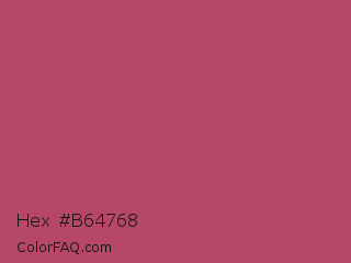 Hex #b64768 Color is a normal rose color and the nearest color is Deep Blush #b44668. Hex code #b64768 and RGB value is rgb(182,71,104). In RGB color space, this color is composed of 71% red, 28% green, 41% blue, In CMYK color space, this color is composed of 0% cyan, 61% magenta, 43% yellow , 29% black , In HSL color space, this color has a hue angle of 342° , 44% saturation and 50% lightness.