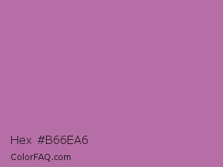 Hex #b66ea6 Color is a normal magenta color and the nearest color is Pearly Purple #b768a2. Hex code #b66ea6 and RGB value is rgb(182,110,166). In RGB color space, this color is composed of 71% red, 43% green, 65% blue, In CMYK color space, this color is composed of 0% cyan, 40% magenta, 9% yellow , 29% black , In HSL color space, this color has a hue angle of 313° , 33% saturation and 57% lightness.
