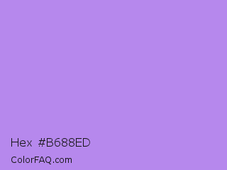 Hex #b688ed Color is a light violet color and the nearest color is Bright Lavender #bf94e4. Hex code #b688ed and RGB value is rgb(182,136,237). In RGB color space, this color is composed of 71% red, 53% green, 93% blue, In CMYK color space, this color is composed of 23% cyan, 43% magenta, 0% yellow , 7% black , In HSL color space, this color has a hue angle of 267° , 74% saturation and 73% lightness.