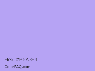 Hex #b6a3f4 Color is a light indigo color and the nearest color is Biloba Flower #b2a1ea. Hex code #b6a3f4 and RGB value is rgb(182,163,244). In RGB color space, this color is composed of 71% red, 64% green, 96% blue, In CMYK color space, this color is composed of 25% cyan, 33% magenta, 0% yellow , 4% black , In HSL color space, this color has a hue angle of 254° , 79% saturation and 80% lightness.