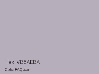 Hex #b6aeba Color is a light purple color and the nearest color is Bombay #afb1b8. Hex code #b6aeba and RGB value is rgb(182,174,186). In RGB color space, this color is composed of 71% red, 68% green, 73% blue, In CMYK color space, this color is composed of 2% cyan, 6% magenta, 0% yellow , 27% black , In HSL color space, this color has a hue angle of 280° , 8% saturation and 71% lightness.
