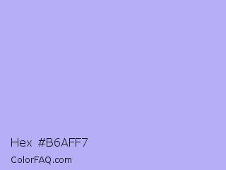 Hex #b6aff7 Color is a very light indigo color and the nearest color is Biloba Flower #b2a1ea. Hex code #b6aff7 and RGB value is rgb(182,175,247). In RGB color space, this color is composed of 71% red, 69% green, 97% blue, In CMYK color space, this color is composed of 26% cyan, 29% magenta, 0% yellow , 3% black , In HSL color space, this color has a hue angle of 246° , 82% saturation and 83% lightness.