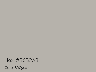Hex #b6b2ab Color is a light orange color and the nearest color is Nobel #b7b1b1. Hex code #b6b2ab and RGB value is rgb(182,178,171). In RGB color space, this color is composed of 71% red, 70% green, 67% blue, In CMYK color space, this color is composed of 0% cyan, 2% magenta, 6% yellow , 29% black , In HSL color space, this color has a hue angle of 38° , 7% saturation and 69% lightness.