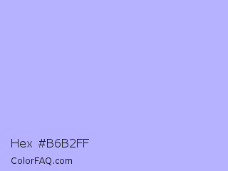Hex #b6b2ff Color is a very light indigo color and the nearest color is Perano #a9bef2. Hex code #b6b2ff and RGB value is rgb(182,178,255). In RGB color space, this color is composed of 71% red, 70% green, 100% blue, In CMYK color space, this color is composed of 29% cyan, 30% magenta, 0% yellow , 0% black , In HSL color space, this color has a hue angle of 243° , 100% saturation and 85% lightness.