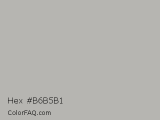 Hex #b6b5b1 Color is a light yellow color and the nearest color is Nobel #b7b1b1. Hex code #b6b5b1 and RGB value is rgb(182,181,177). In RGB color space, this color is composed of 71% red, 71% green, 69% blue, In CMYK color space, this color is composed of 0% cyan, 1% magenta, 3% yellow , 29% black , In HSL color space, this color has a hue angle of 48° , 3% saturation and 70% lightness.