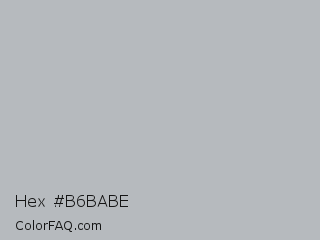 Hex #b6babe Color is a light blue color and the nearest color is Gray X11 Gray #bebebe. Hex code #b6babe and RGB value is rgb(182,186,190). In RGB color space, this color is composed of 71% red, 73% green, 75% blue, In CMYK color space, this color is composed of 4% cyan, 2% magenta, 0% yellow , 25% black , In HSL color space, this color has a hue angle of 210° , 6% saturation and 73% lightness.