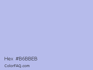 Hex #b6bbeb Color is a very light blue color and the nearest color is Perano #a9bef2. Hex code #b6bbeb and RGB value is rgb(182,187,235). In RGB color space, this color is composed of 71% red, 73% green, 92% blue, In CMYK color space, this color is composed of 23% cyan, 20% magenta, 0% yellow , 8% black , In HSL color space, this color has a hue angle of 234° , 57% saturation and 82% lightness.