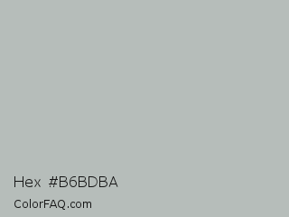 Hex #b6bdba Color is a light green color and the nearest color is Ash Gray #b2beb5. Hex code #b6bdba and RGB value is rgb(182,189,186). In RGB color space, this color is composed of 71% red, 74% green, 73% blue, In CMYK color space, this color is composed of 4% cyan, 0% magenta, 2% yellow , 26% black , In HSL color space, this color has a hue angle of 154° , 5% saturation and 73% lightness.