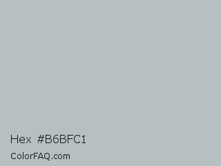Hex #b6bfc1 Color is a light cyan color and the nearest color is Gray X11 Gray #bebebe. Hex code #b6bfc1 and RGB value is rgb(182,191,193). In RGB color space, this color is composed of 71% red, 75% green, 76% blue, In CMYK color space, this color is composed of 6% cyan, 1% magenta, 0% yellow , 24% black , In HSL color space, this color has a hue angle of 191° , 8% saturation and 74% lightness.
