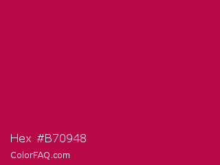 Hex #b70948 Color is a normal rose color and the nearest color is Pictorial Carmine #c30b4e. Hex code #b70948 and RGB value is rgb(183,9,72). In RGB color space, this color is composed of 72% red, 4% green, 28% blue, In CMYK color space, this color is composed of 0% cyan, 95% magenta, 61% yellow , 28% black , In HSL color space, this color has a hue angle of 338° , 91% saturation and 38% lightness.