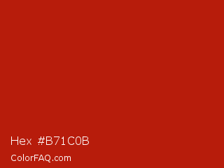 Hex #b71c0b Color is a normal red color and the nearest color is International Orange Engineering #ba160c. Hex code #b71c0b and RGB value is rgb(183,28,11). In RGB color space, this color is composed of 72% red, 11% green, 4% blue, In CMYK color space, this color is composed of 0% cyan, 85% magenta, 94% yellow , 28% black , In HSL color space, this color has a hue angle of 6° , 89% saturation and 38% lightness.