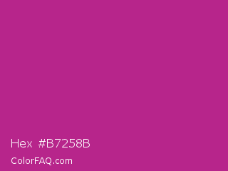 Hex #b7258b Color is a normal magenta color and the nearest color is Fandango #b53389. Hex code #b7258b and RGB value is rgb(183,37,139). In RGB color space, this color is composed of 72% red, 15% green, 55% blue, In CMYK color space, this color is composed of 0% cyan, 80% magenta, 24% yellow , 28% black , In HSL color space, this color has a hue angle of 318° , 66% saturation and 43% lightness.
